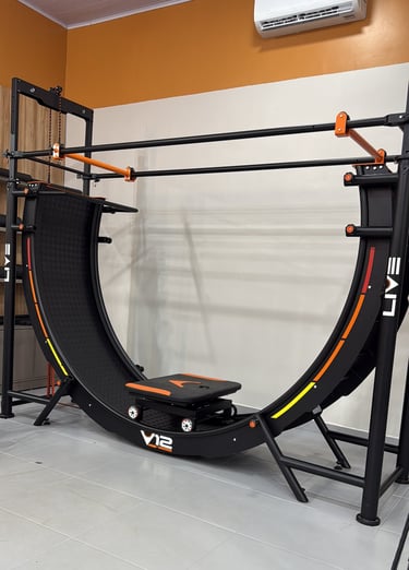 O V12 é um equipamento versátil que combina Pilates, treinamento funcional e mobilidade. Ele permite movimentos tridimensionais, trabalha todo o corpo sem impacto e se adapta a qualquer nível de iniciantes a atletas.